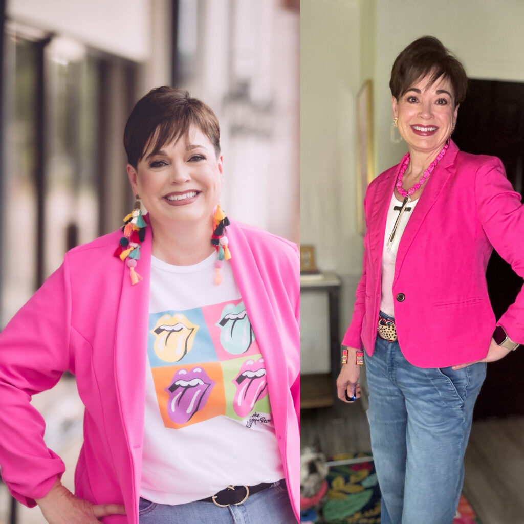 In 2025, after my own transformation—losing 100 pounds and navigating the confusion of rediscovering my personal style—I completed my certification as a Style Coach. I suddenly understood what so many women feel in midlife: that disconnection between who we were and who we’re becoming. My background in interior design gave me a deep understanding of color, proportion, texture, and balance—skills that translate seamlessly from the home to the wardrobe. Style Coaching allowed me to take that artistry and turn it inward, helping women rebuild confidence from the inside out.